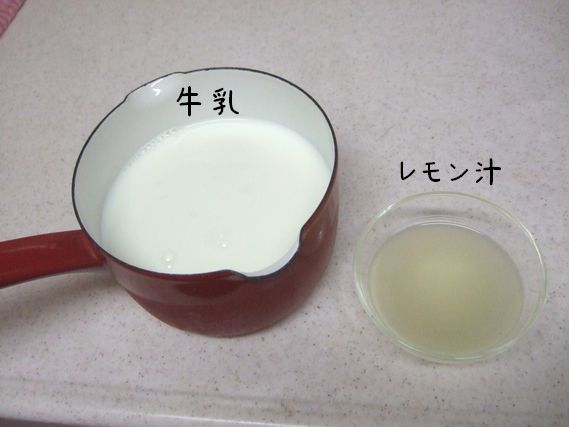 牛乳を60~80℃位に温めて~、火を止めてレモン汁を混ぜる!!
