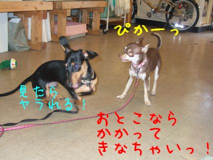 まだ5ヶ月で、きり&なのを見て逃げ回っていたのだが慣れてきたら・・・