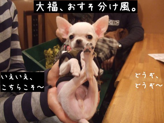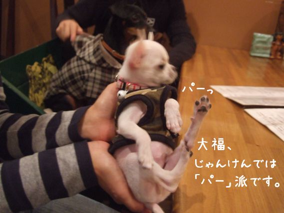 いろんなお店でたくさんおやつをもらったし、クエスチョンでもゲームの景品のワンコパンも貰った(ゲームには1コも勝てなかったので、じぞのかぁちゃんに分けてもらったんだけど・・・・)ので、当分おやつかわなくていいかな♪