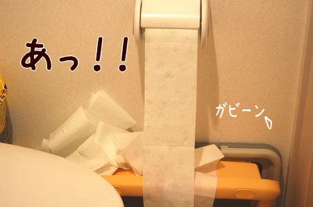 トイレットペーパーが凄い事になっちゃってます、というか、凄い事をされちゃいました。
