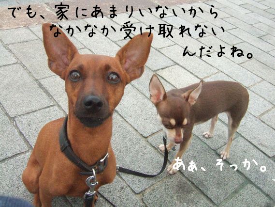 その間、ソワソワして、「ちょっとコンビにまで」って行ってその間に来ちゃったり、洗濯干しててチャイムが聞こえなかったりして、「こいつ、指定しておきながらいねーよ!」とか思われてもヤだし、とか考えちゃうから、指定もどうかしら?とか思うのよね。