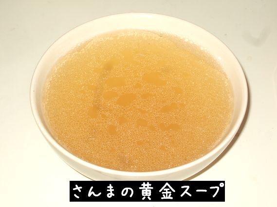 もちろん、さんまを煮た時のスープだってムダにはしません、出来ません。