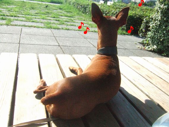 横から舌出しているミニピン(だけじゃなく、犬全て)を初めて見たよ!