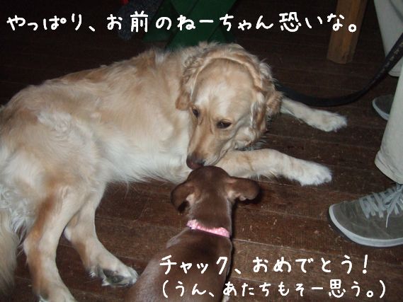 チャックが尻尾を振ってるからなにかな~と思ったらなのさんがチャックの顔にKISS、KISS!!