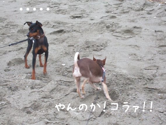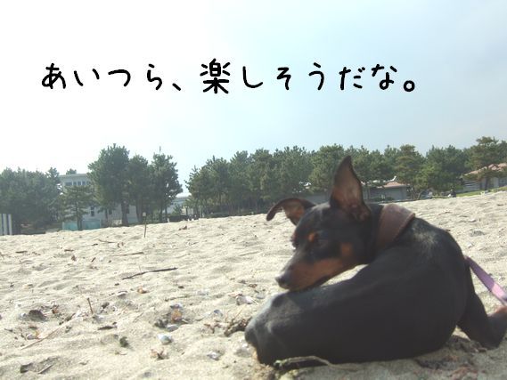 ずーっと海に浸かっていても寒いので、ロビンママとやこ丸。は交代で犬番。