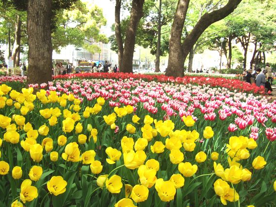 さてさて、家の近くの公園は、毎年この時期になるとチューリップで埋め尽くされます。