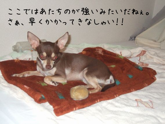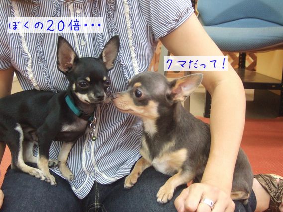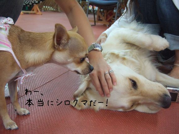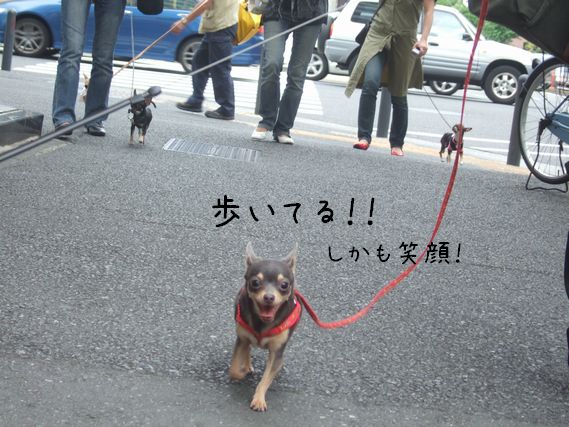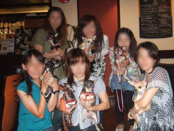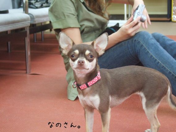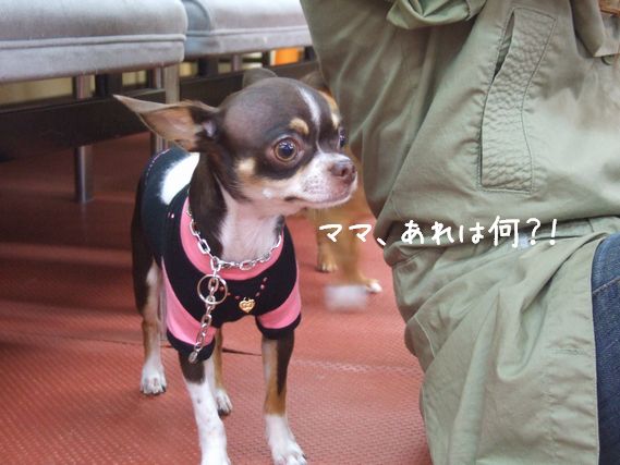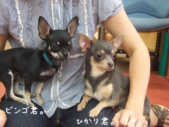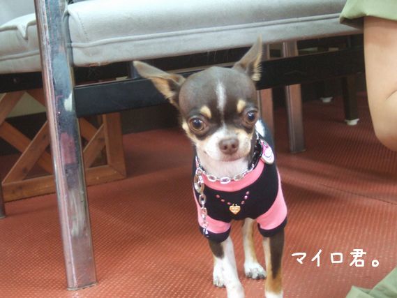 チワワのオフ会にはあまり慣れていないやこ丸。ですが、みんな毛色が違うのでミニピンみたいに「自分んちの子」が分からなくならない!!(あ、椿ちゃんとクーちゃんは似てるけど、椿ちゃんは洋服を着てたので分かり易かった♪)