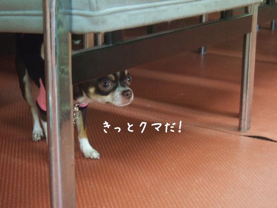 とうとう後ろに置いてあるイスの下に隠れてしまいました。