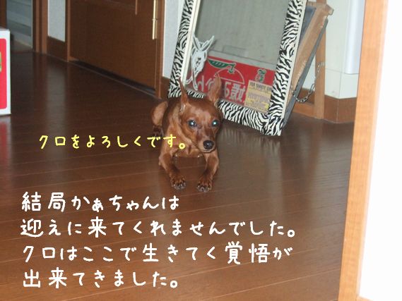 この時きりさんにこの家で生きていくノウハウを聞いていたクロトちゃんでしたが、今日はこの辺で愛しのかぁちゃんにお迎えに来てもらいました。
