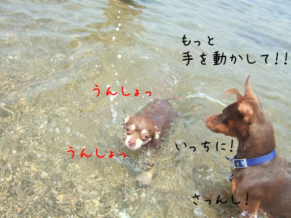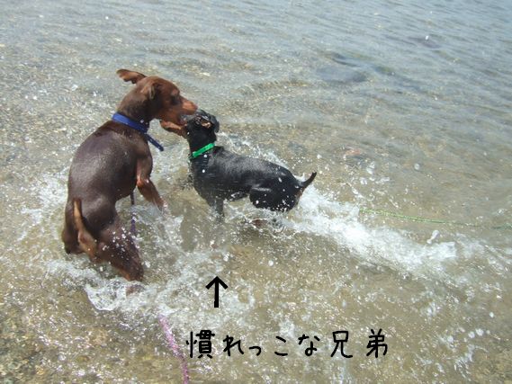 この2人(頭)何度も海に来ているので、躊躇なく、じゃれあいながら海に入って行きます。さすが!