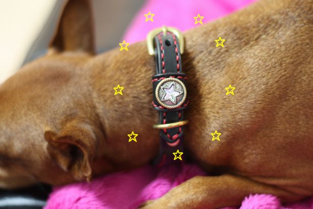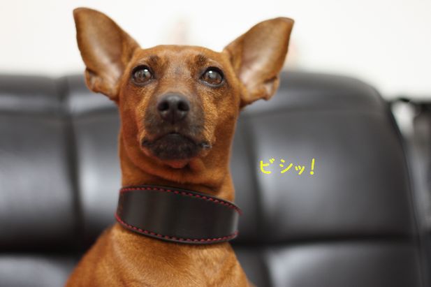 ミニピンは、きりさんは特に首が長いので、カラーにはちょっとこだわっています。