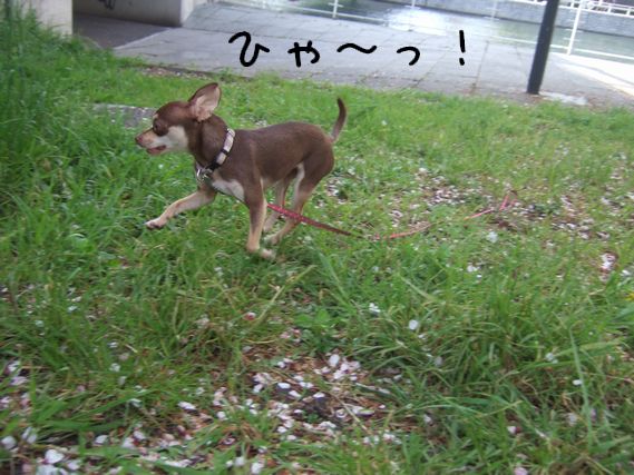 散歩も好きなんだか、置いて行かれるのがイヤだから来てるのか良く分かりません。