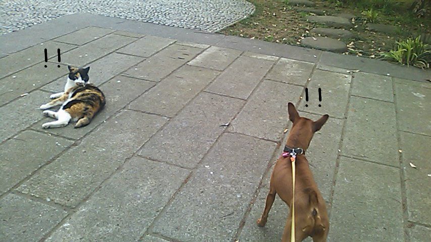 逃げないネコには近づかない(恐くて近づけない)きりさん。