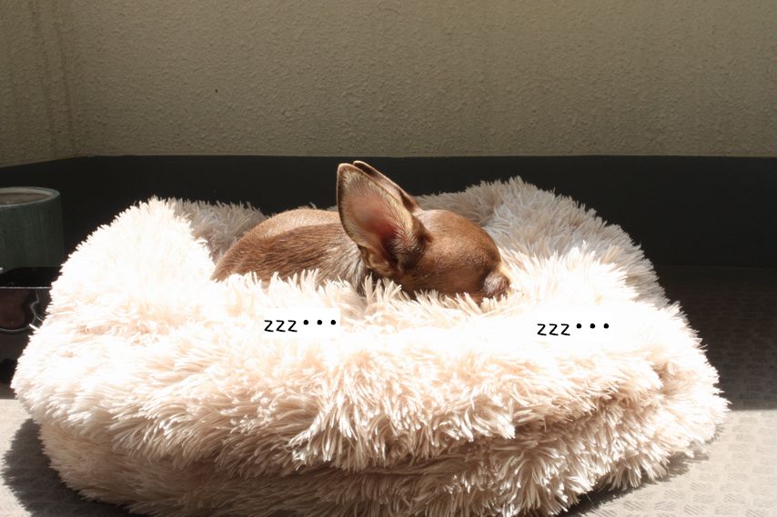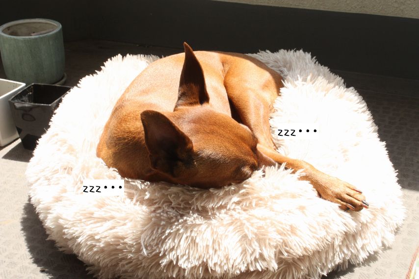 天気のいい日はモコモコクッションを日の当たるところに出してあげるんですが・・・