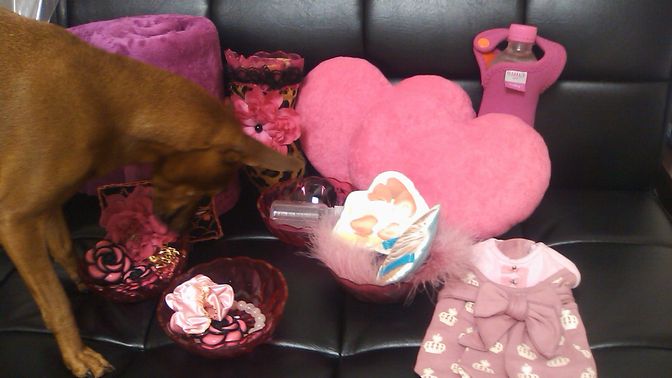 ダンボールを開けたところからピンクで溢れています!